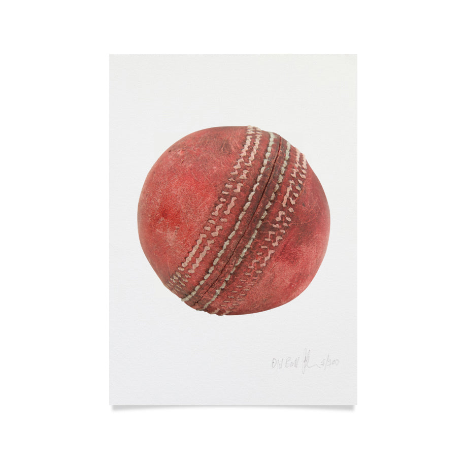 This artwork, (one of 100) printed on German Hahnemuhle Etching paper (310gsm) features a beautifully worn cricket ball complete with broken seams and other markings.