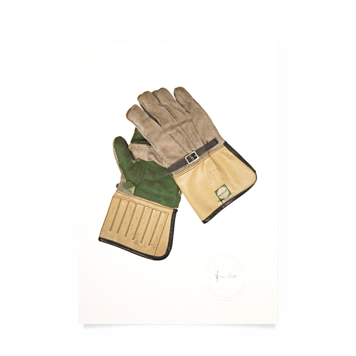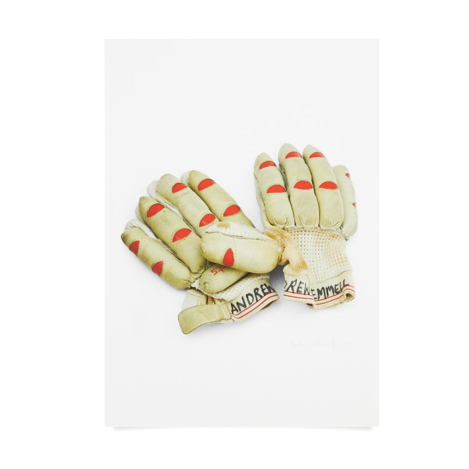 This artwork, (one of 100) printed on German Hahnemuhle Etching paper (310gsm) features a beautiful pair of vintage wicket keeping gloves, circa 1960's. Only marginally more rudimentary than today's models this particular pair look to have seen a bit of action based on the wear and tear evident, (typically produced from the repeated pounding from a hard leather ball).