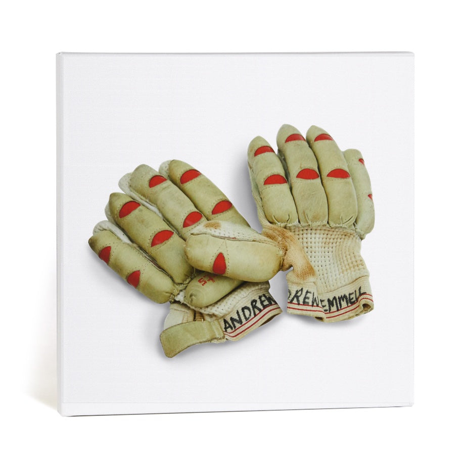 $120.00The image on this canvas shows a pair of kid’s batting gloves from the 1970’s. The ‘cigar’ shape fingers with red markings was very much of the era. Printed using state of the art HP Latex printers in high definiton, the artwork features a 3.8cm finger jointed quality wood frame and is delivered ready to hang.
