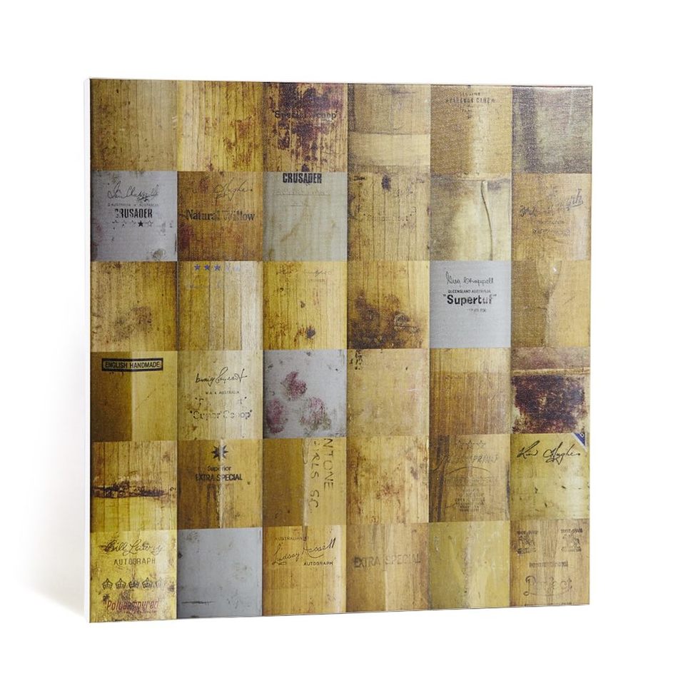 This artwork features a line up of 14 vintage Australian cricket bats originating from the ‘70’s and ‘80’s.