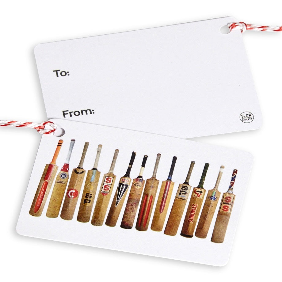 This 6cm x 8.5cm Double Sided Gift Tag is adorned with 13 beautiful old cricket bats.