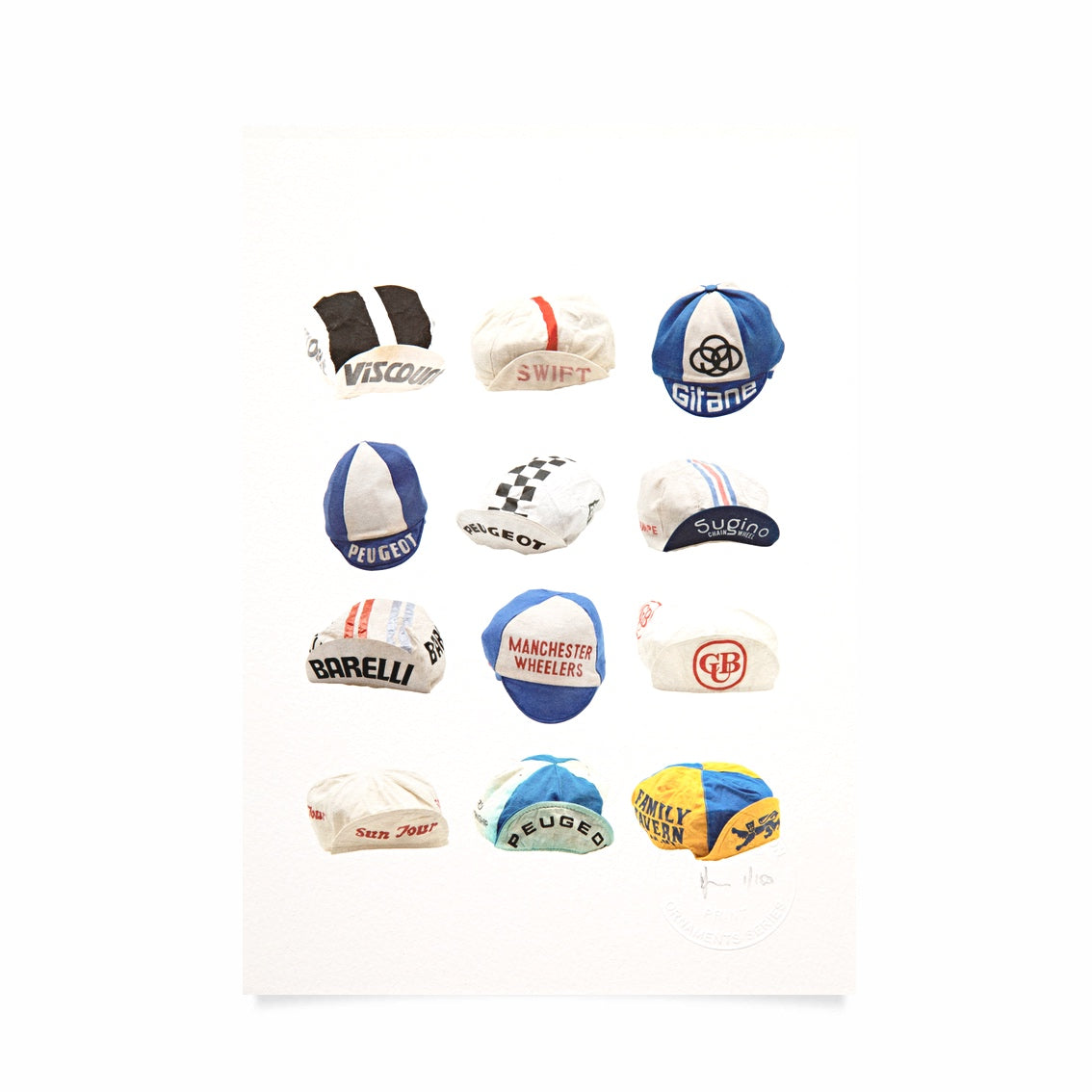 $30.00This artwork, (one of 100) printed on German Hahnemuhle Etching paper (310gsm) shows a combination of superb vintage cycling caps from the Australian cycling scene. The design will evoke fond memories for riders of the 1950's - '80's in particular. Among the caps are various team and event ones synonymous with the cycling in this country and abroad. The paper upon ...