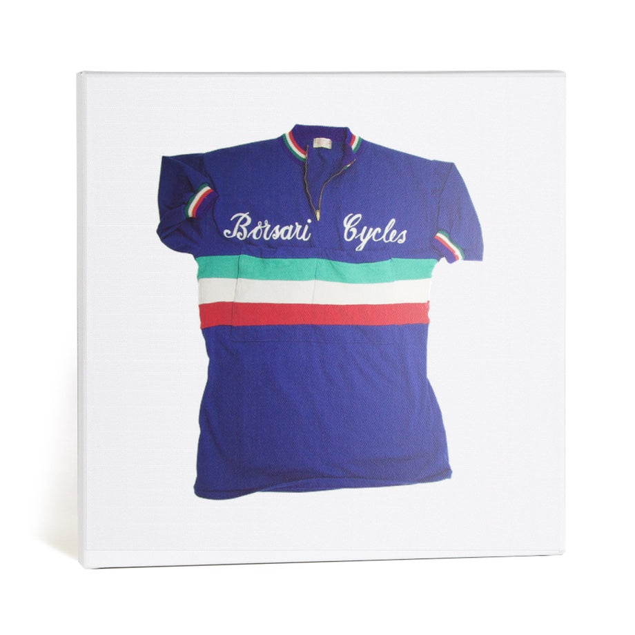 $120.00This canvas features a superb vintage cycling jersey, (circa 1960’s), which had been worn by a cyclist racing for the Borsari Cycles team, a name synonymous with the sport in this country for more than 75 years. Printed using state of the art HP Latex printers in high definition, the artwork features a 3.8cm finger jointed quality wood frame & is delivered r ...
