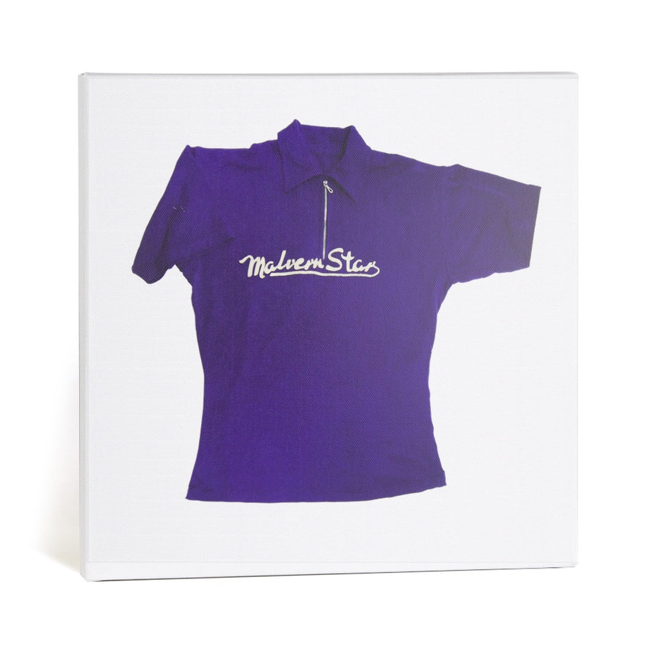 $120.00This canvas features a superb vintage cycling jersey, (circa 1960’s), which had been worn by a cyclist racing for the Malvern Star team, a name synonymous with the sport in this country for decades. Printed using state of the art HP Latex printers in high definition, the artwork features a 3.8cm finger jointed quality wood frame & is delivered ready to hang.