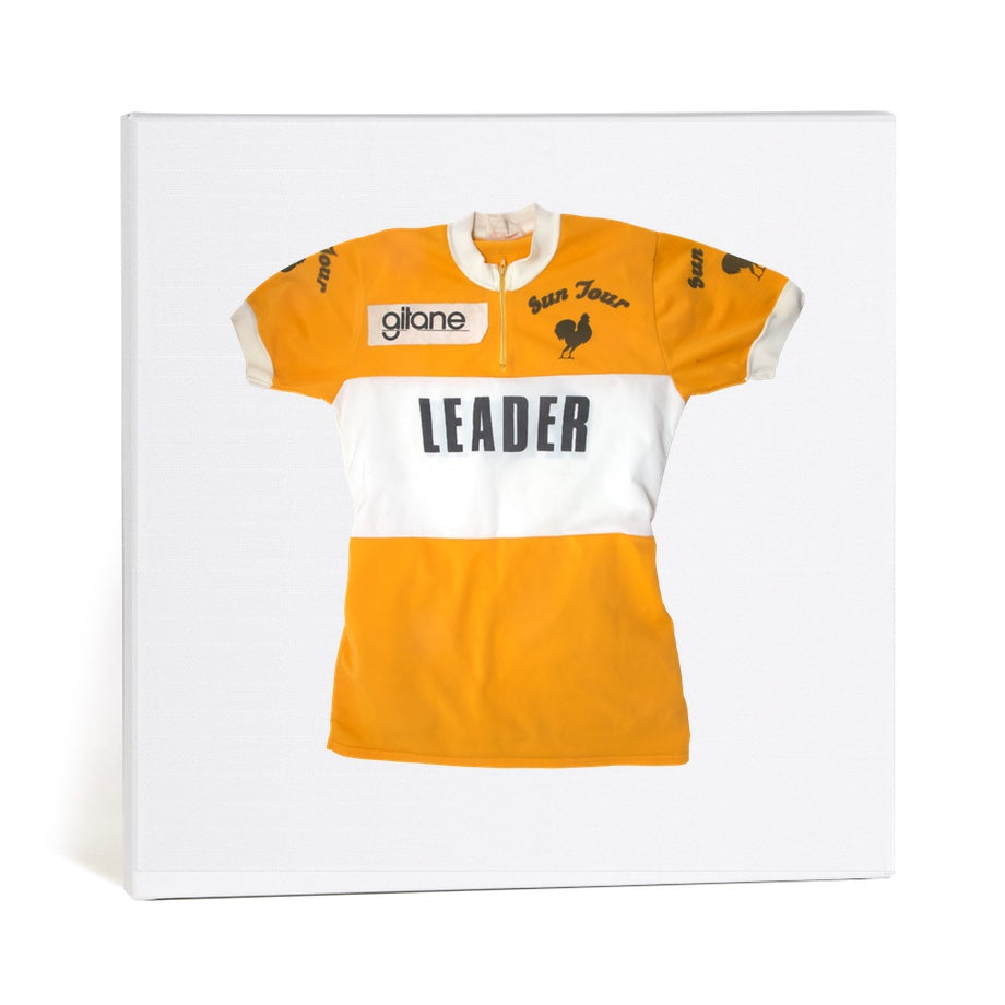 $120.00This canvas shows a Tour Leader's jersey from the Sun Tour, one of Australia's premier road races first held in 1952. The jersey belongs to two time winner John Trevorrow who won in 1975 & '77. Printed using state of the art HP Latex printers in high definition, the artwork features a 3.8cm finger jointed quality wood frame & is delivered ready to hang.