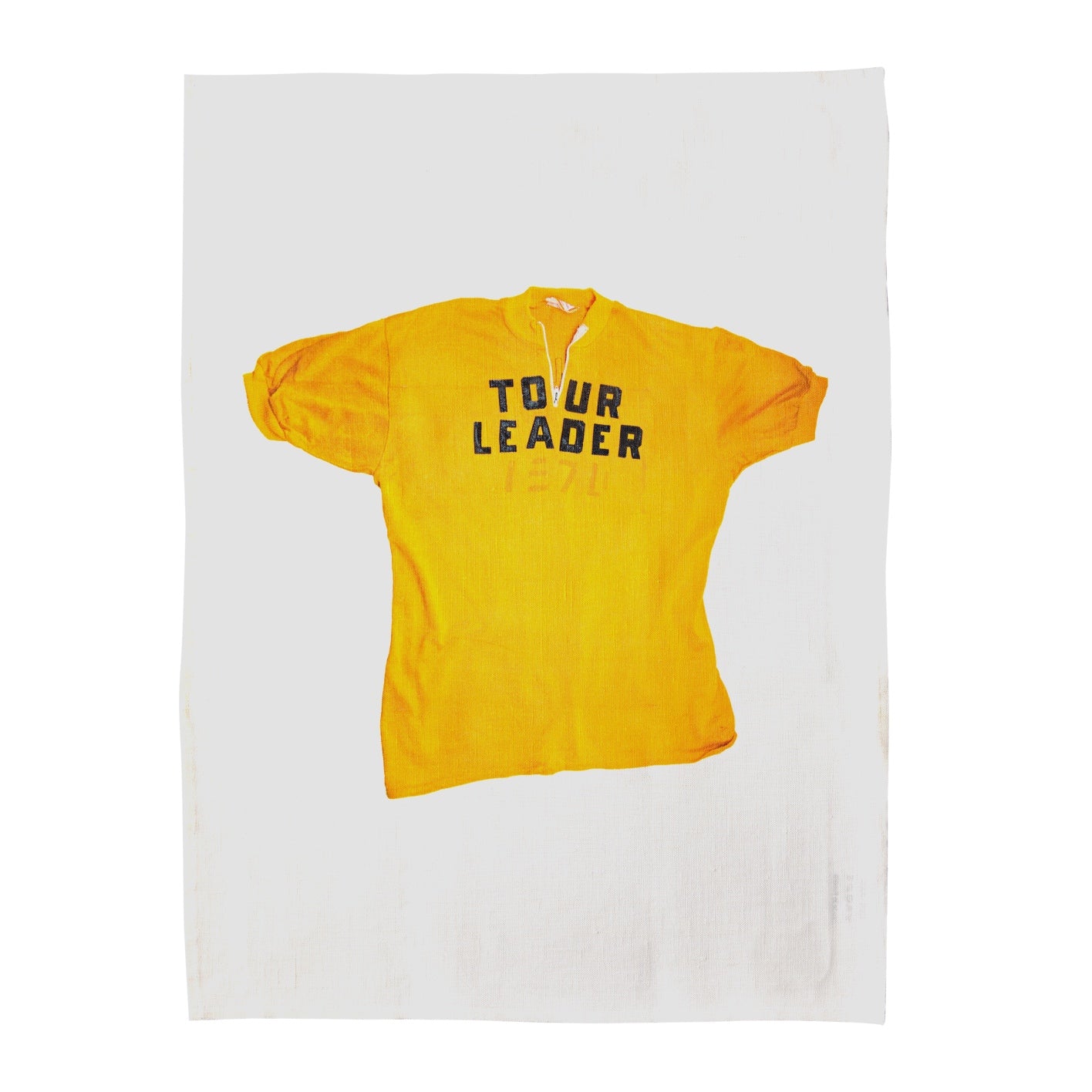 This canvas shows a Tour Leader's jersey from the Sun Tour, one of Australia's premier road races first held in 1952. The jersey belongs to two time winner John Trevorrow who won in 1975 & '77.