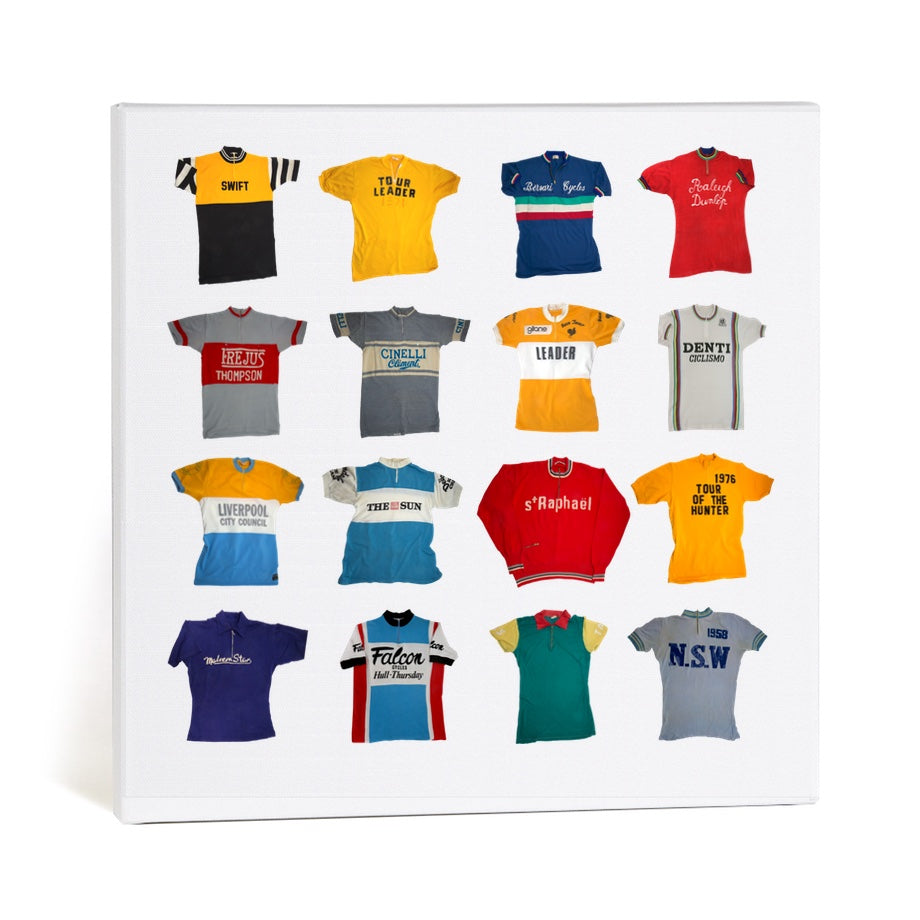 $120.00This canvas shows some superb vintage cycling jerseys from the Australian cycling scene. Featuring road and track jerseys, the design will evoke fond memories for riders of the 1950's - '80's in particular. Among them are several race team jerseys, tour leader's tops and training jerseys with overseas cycling brands writ large. Printed using state of the art HP ...