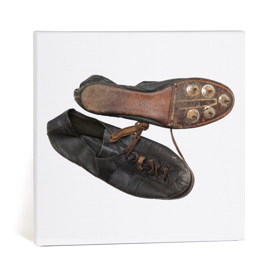 $120.00This canvas features a superb pair of vintage running spikes, (circa 1940’s), which are well worn & feature the lengthy spikes typically suited to cinder tracks. Printed using state of the art HP Latex printers in high definition, the artwork features a 3.8cm finger jointed quality wood frame & is delivered ready to hang.