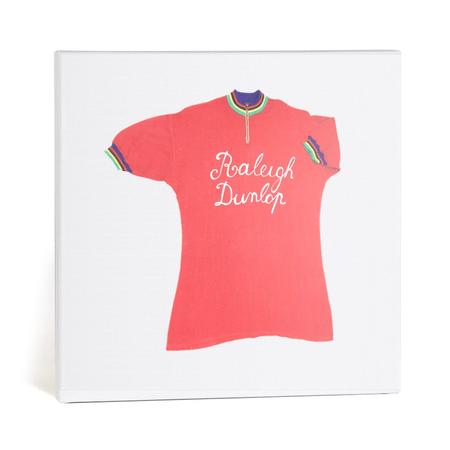 $120.00This canvas features a superb vintage cycling jersey, (circa 1960’s), which had been worn by a cyclist racing for the Raleigh Dunlop team, a name synonymous with the sport in this country for decades. Printed using state of the art HP Latex printers in high definition, the artwork features a 3.8cm finger jointed quality wood frame & is delivered ready to hang.
