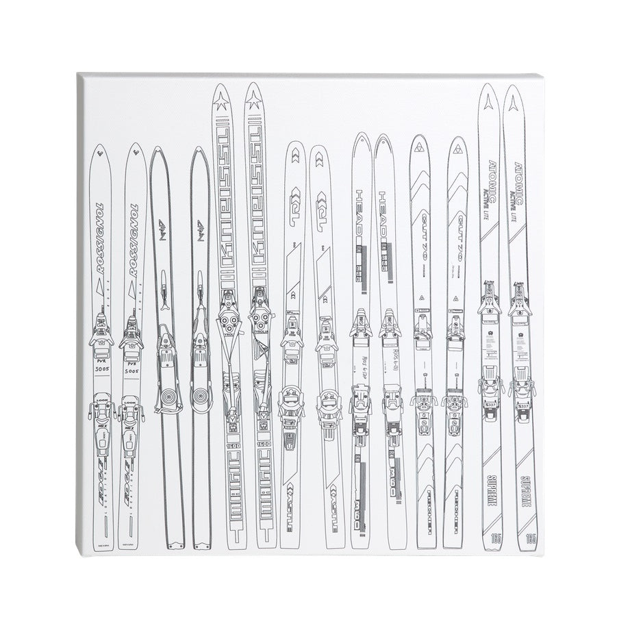 $120.00This artwork features an outlined version of photographs of 7 pairs of vintage alpine skis. Printed using state of the art HP Latex printers in high definiton, the artwork features a 3.8cm finger jointed quality wood frame and is delivered ready to hang. The artwork features a 3.8cm finger jointed quality wood frame and is delivered ready to hang.