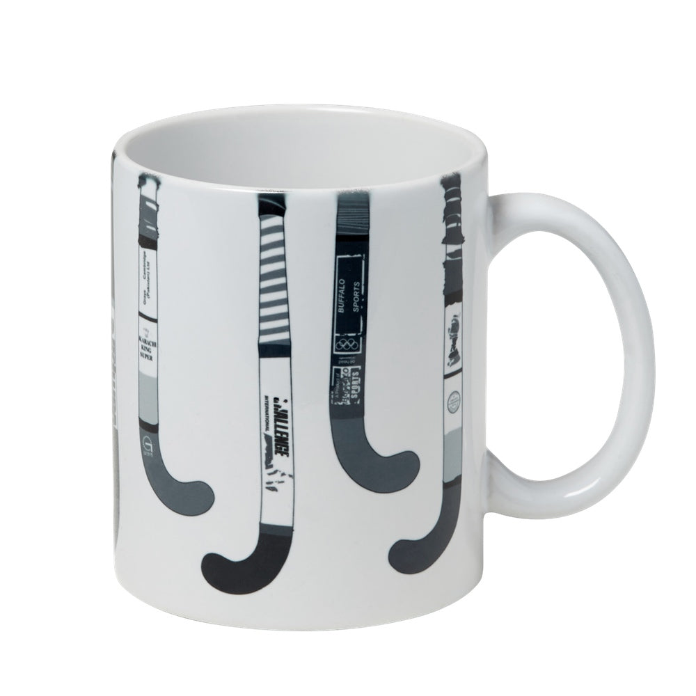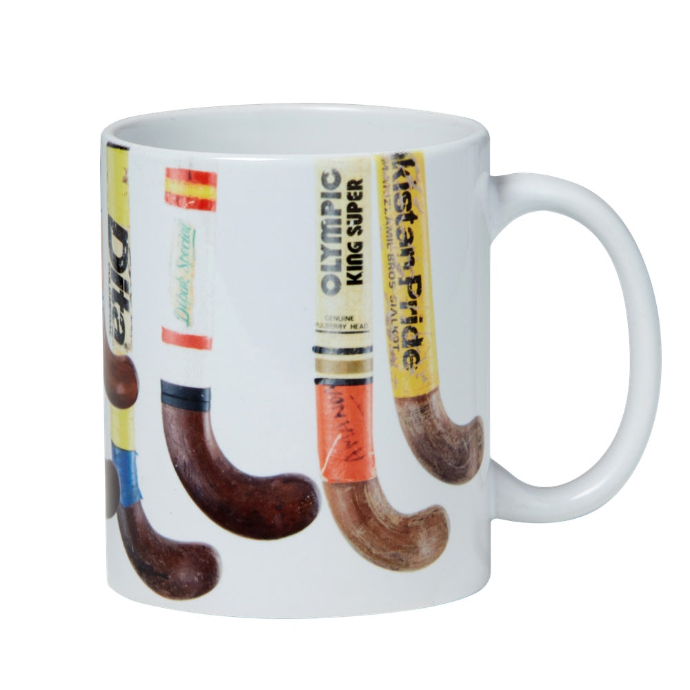 The superbly worn vintage hockey sticks featured on this coffee mug are representative of those coveted by the young up & comers of the 1980's. A new stick by one of these manufacturers from the game's heartlands in India & Pakistan was just about the best present a young player could get.