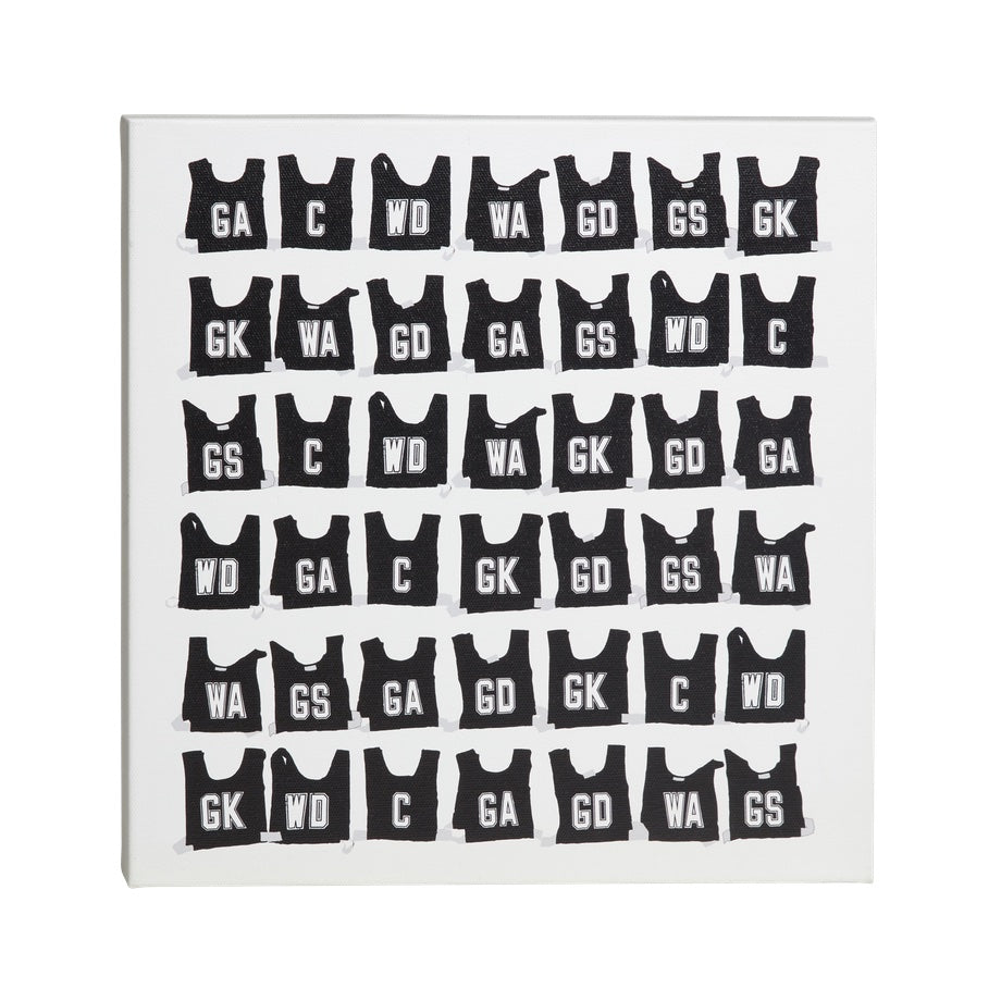 $120.00This artwork features an outlined version of photographs of 7 vintage Netball Bibs. Printed using state of the art HP Latex printers in high definiton, the artwork features a 3.8cm finger jointed quality wood frame and is delivered ready to hang. The artwork features a 3.8cm finger jointed quality wood frame and is delivered ready to hang.