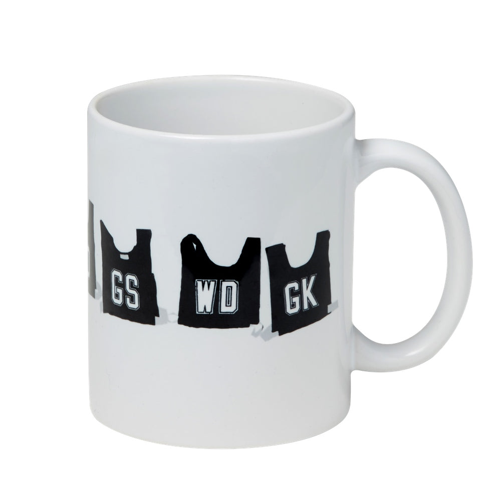$28.00This mug features an outlined version of photographs of seven vintage netball bibs. This mug is dishwasher and microwave safe and is housed in a protective cardboard box.