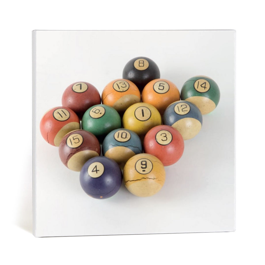 This canvas features a collection of vintage clay pool balls. Superb colours & highly evocative this one will go straight to the pool room!.