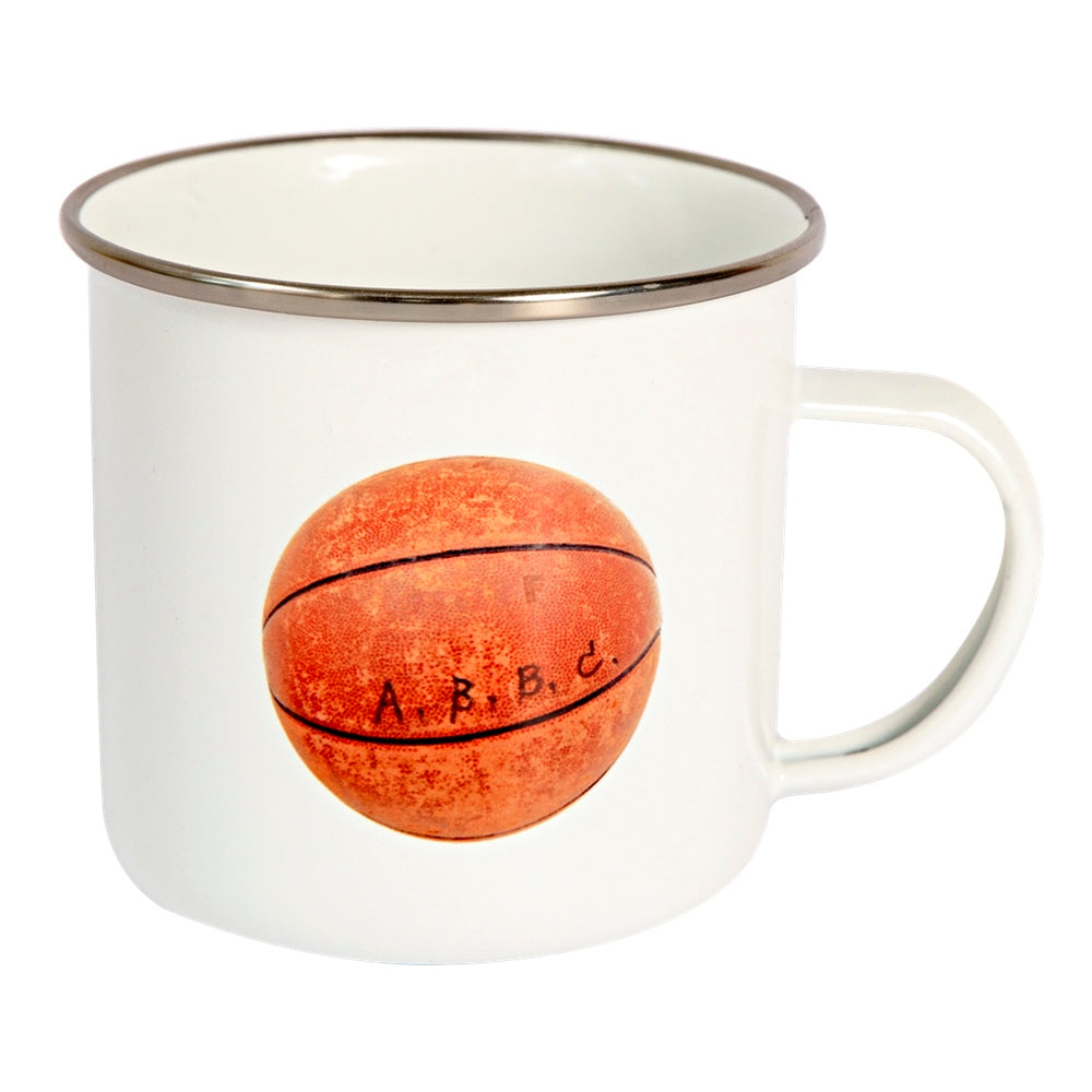 $26.00The image on this enamel mug shows a club ball, (formerly belonging to the A.B.B.C.). Its discolouration and markings would suggest extensive use and note also the ‘F’ stamped onto the ball. Classic shaped mug perfect for coffee, tea & other beverages; lightweight, shatterproof & easy to clean. Not suitable for microwave.